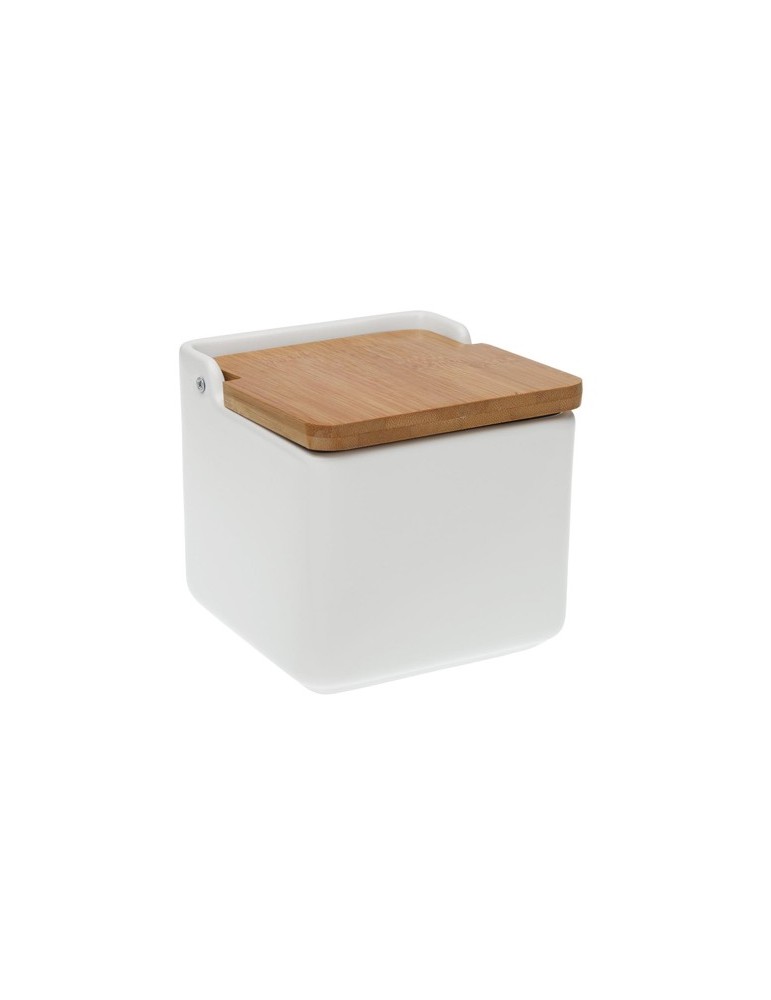 Fabricado en cerámica con taba de bambú. 12,2 x 12,2 x 11,5 cm.