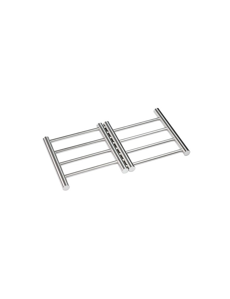 De acero de 20 cm de ancho, y una longitud de 22 cm recogido y 36 cm abierto.