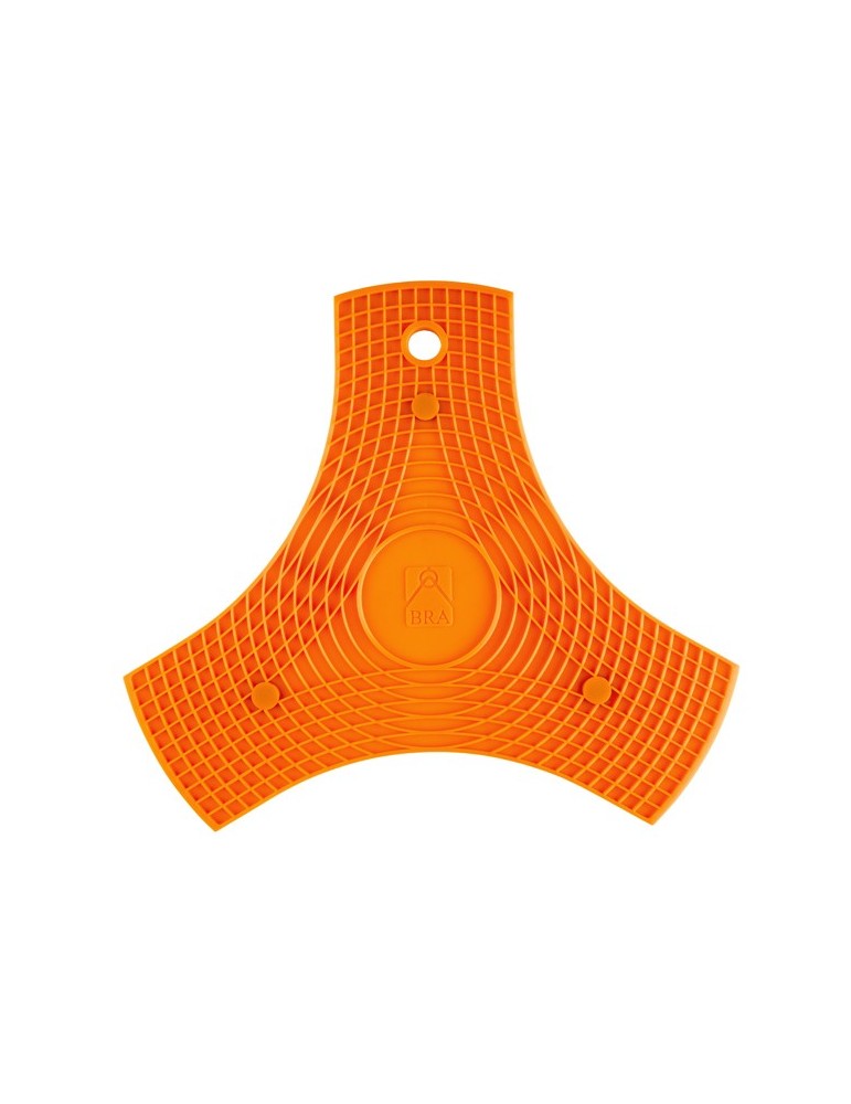 3 en 1 en silicona. Salvamantel imantado, manopla, protector sartenes. Naranja.