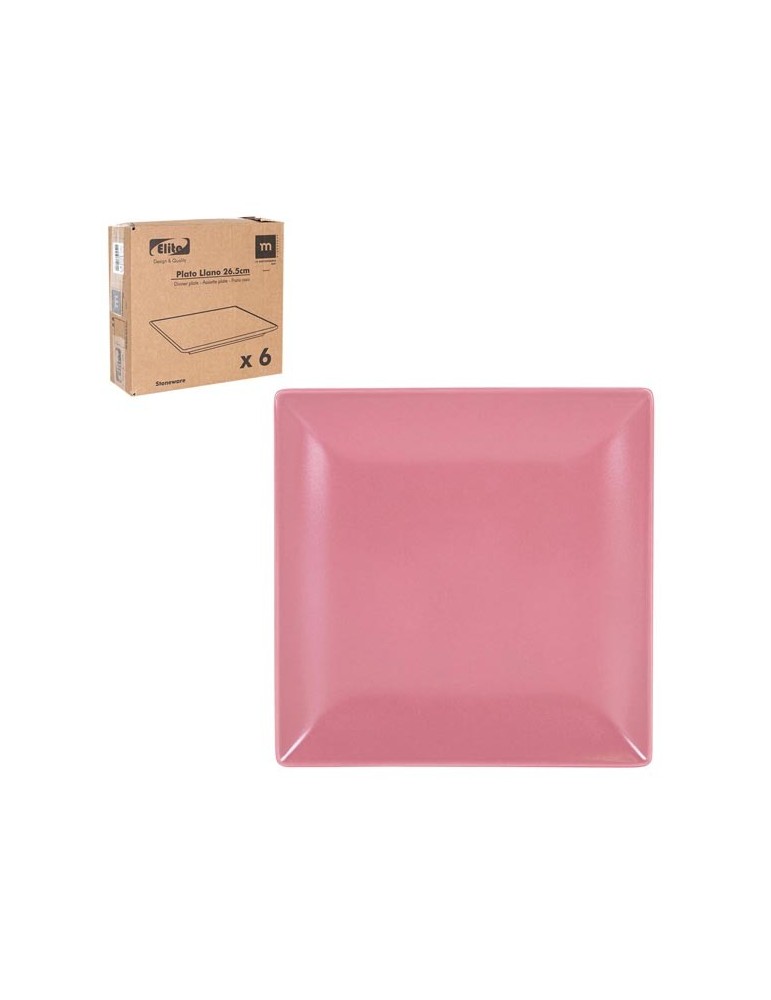 PLATO LLANO CUADRADO ROSA 26,5 CM R25001