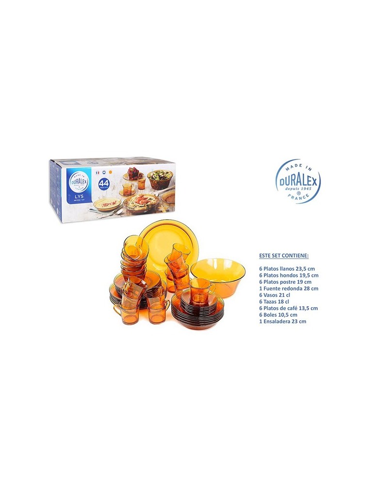VAJILLA VIDRIO AMBAR LYS 44 PZ A80-9011DS