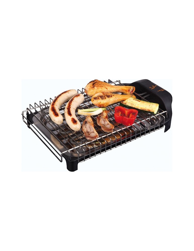 Potencia 2.400 W. Voltaje 230 V. 42 x 26 x 7 cm (largo x ancho x alto). Parrilla 2 alturas carne/pescado. Desmontable. Bandeja acero inoxidable.