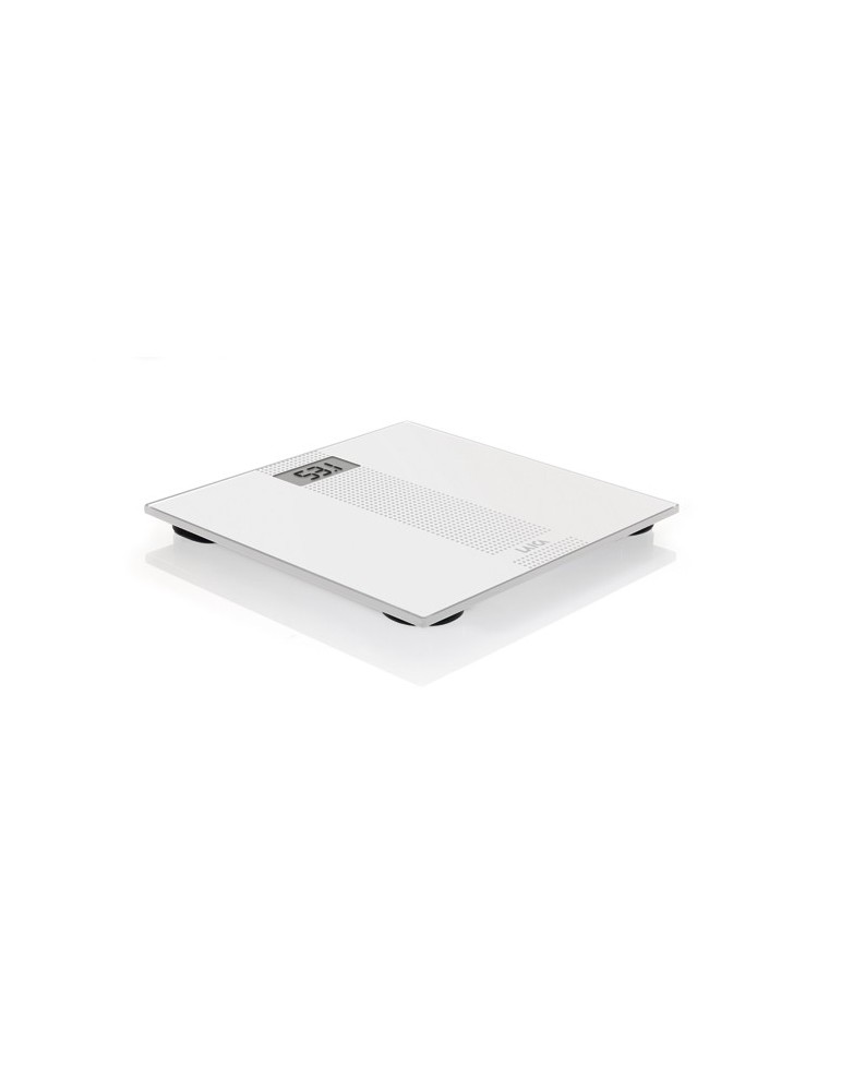 Cristal templado de 6 mm. Peso máximo 180 kg. Dimensiones de la báscula: 30 x 30 cm. Pila incluida. Se enciende automáticamente al subirse y se apaga automáticamente unos segundos después de haberse bajado. Conversor kg / Libras.