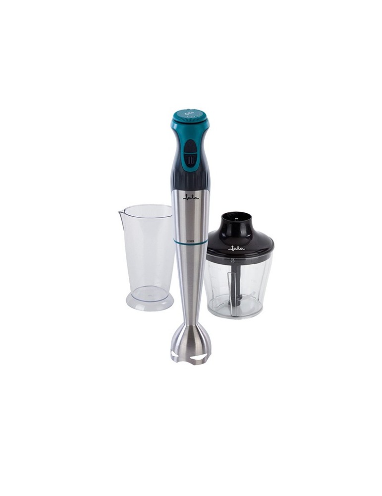 Gran potencia 1.200 W. Regulador electrónico de velocidad. Doble cuchilla de acero inoxidable de gran solidez. Pie de acero inoxidable desmontable. 2 pulsadores de velocidad. Accesorios incluidos: Picadora cuchilla inox. y vaso medidor 800 ml. Asa ergonómica.