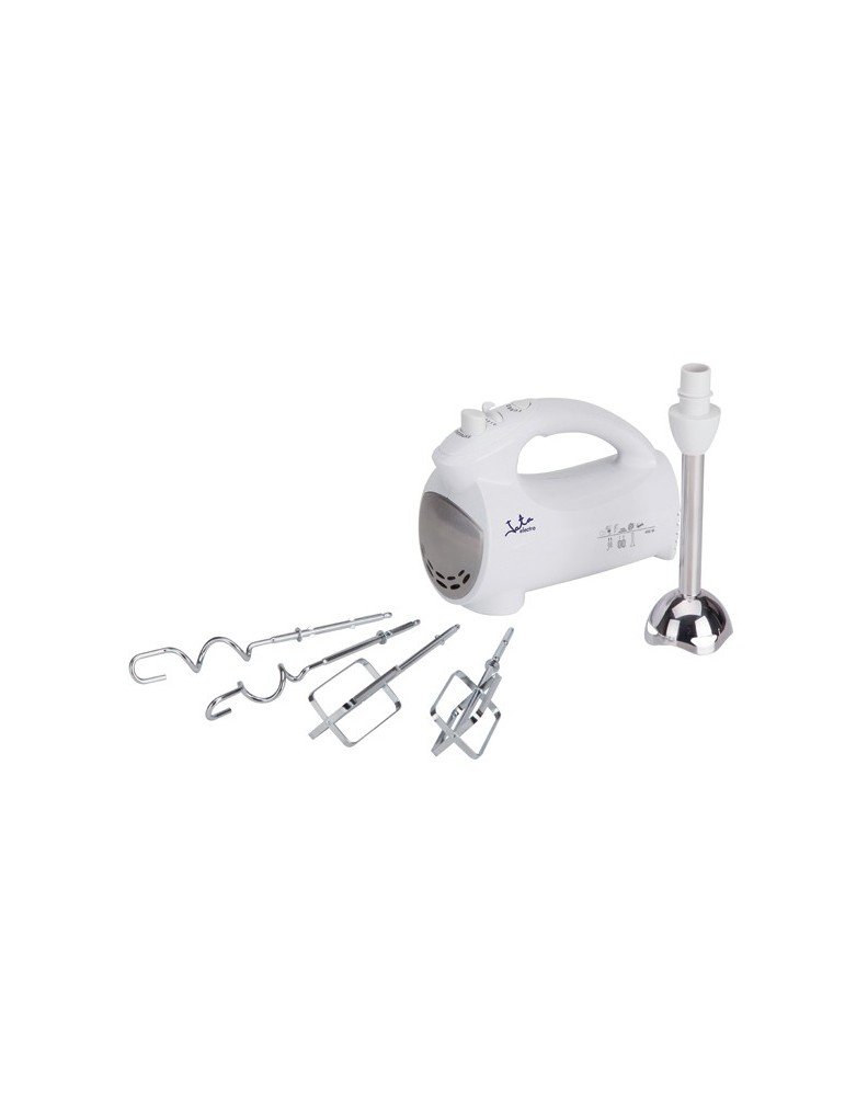 5 velocidades + turbo. 5 accesorios intercambiables. 2 espirales para amasar. 2 varillas para mezclar. Brazo batidor de acero inoxidable. Fácil limpieza. Voltaje 230 V. Potencia 400 W.
