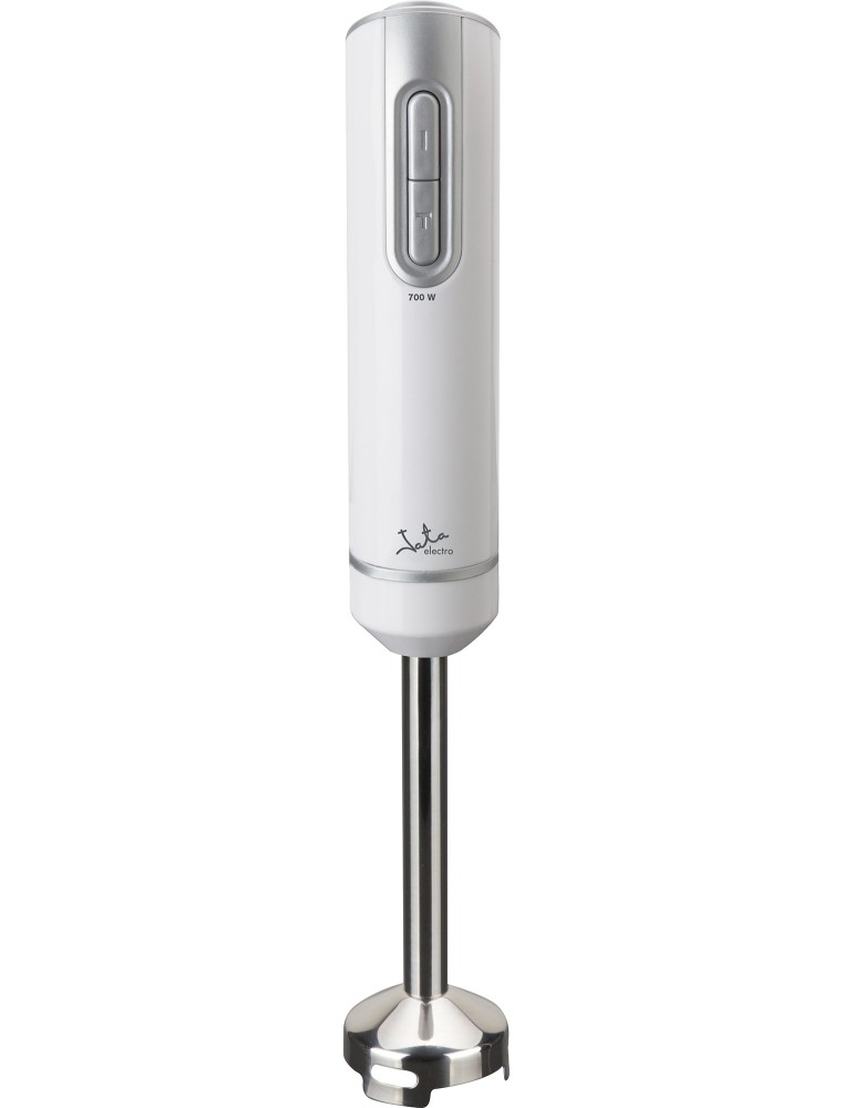 Gran potencia 700 W. Pie de acero inoxidable desmontable. Doble cuchilla de acero inoxidable de gran solidez. 2 velocidades. Vaso medidor incluido, 800 ml. Voltaje 230 V.