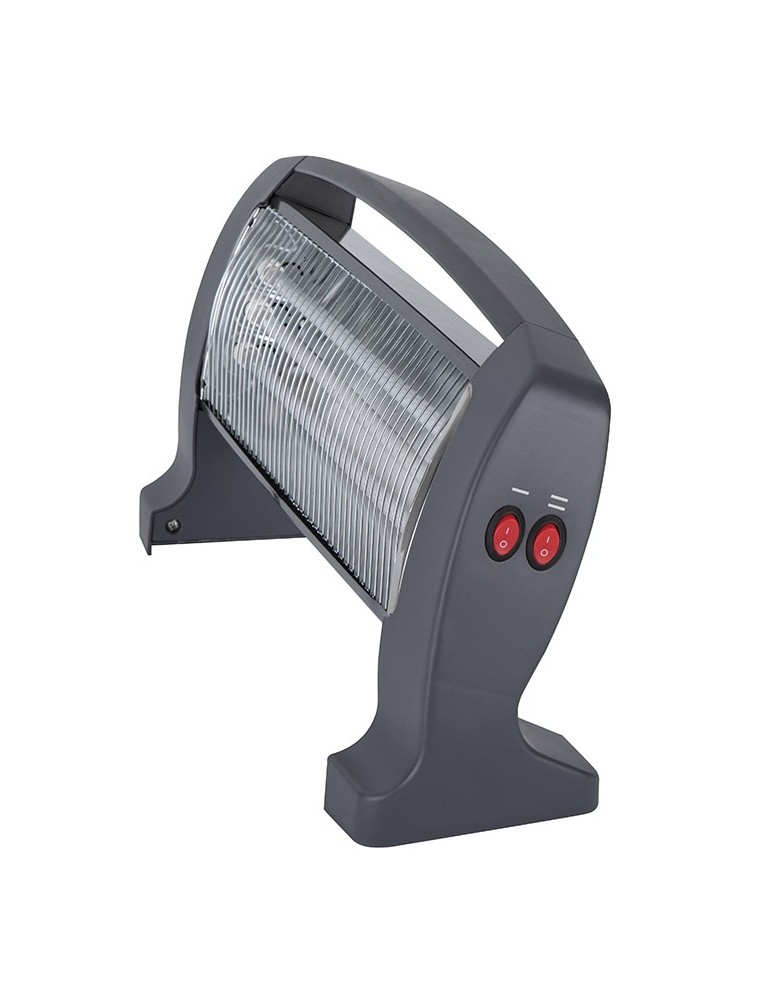 Potencia máxima 1200 W. 3 barras de cuarzo. 3 ajustes de temperatura. Eficiente distribución de calor. Dispositivo de seguridad antivuelco. Asa de transporte. Silencioso.