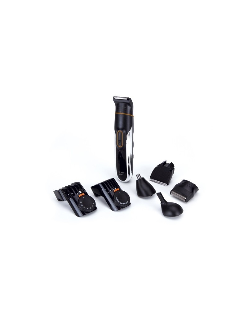 Sin cable. Autonomía 60 minutos. Recargable. Cable USB incluido. Carga rápida de la batería: 2 horas. Impermeable al agua. 7ccesorios intercambiables incluidos: peine, aceite lubricante, cepillo para limpieza de cuchillas. Bandeja soporte. Multicorriente de 100-240 V.