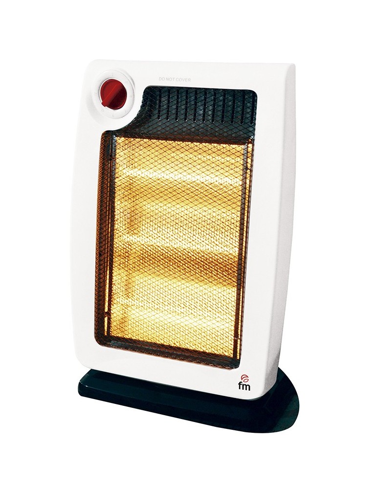 1.200 W de potencia. 3 potencias: 400 W / 800 W / 1.200 W. 3 barras halógenas. Sistema de seguridad antivuelco. Oscilante.