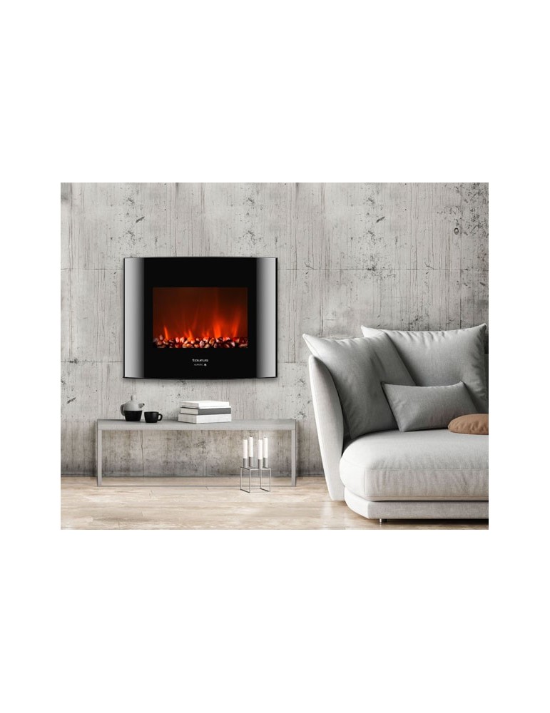 Chimenea eléctrica de 2.000 W de potencia, con 2 posiciones de calor, con 2 acabados (piedras o carbón), 5 intensidades de llama, Cristal de toque frío, control remoto, medidas 66 cm de largo x 15 cm profundidad x 52 cm alto. Kit soporte de pared incluido.
