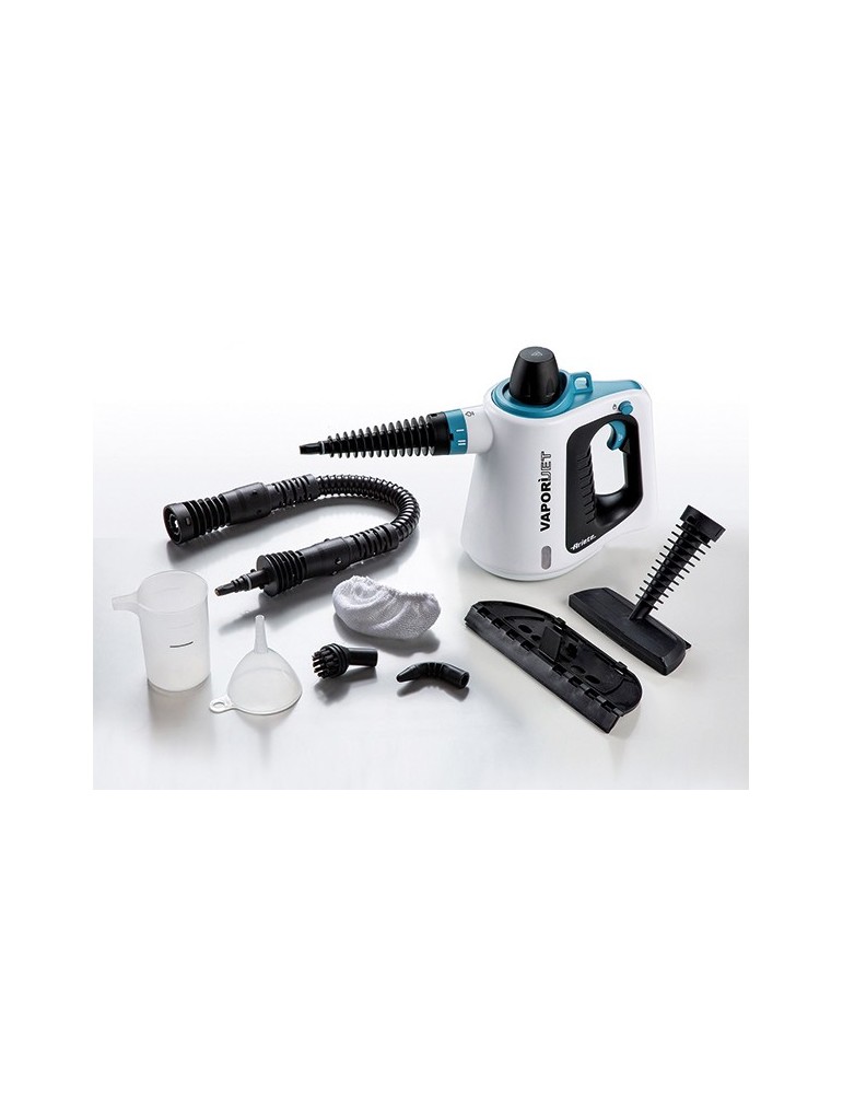 Potencia: 1.050 W. Presión máxima: 3.5 BAR. Caldera de aluminio. Capacidad útil de la caldera: 0.17 L. Tiempo de vapor 8 min. Tapón de seguridad. Incluye 8 accesorios de limpieza