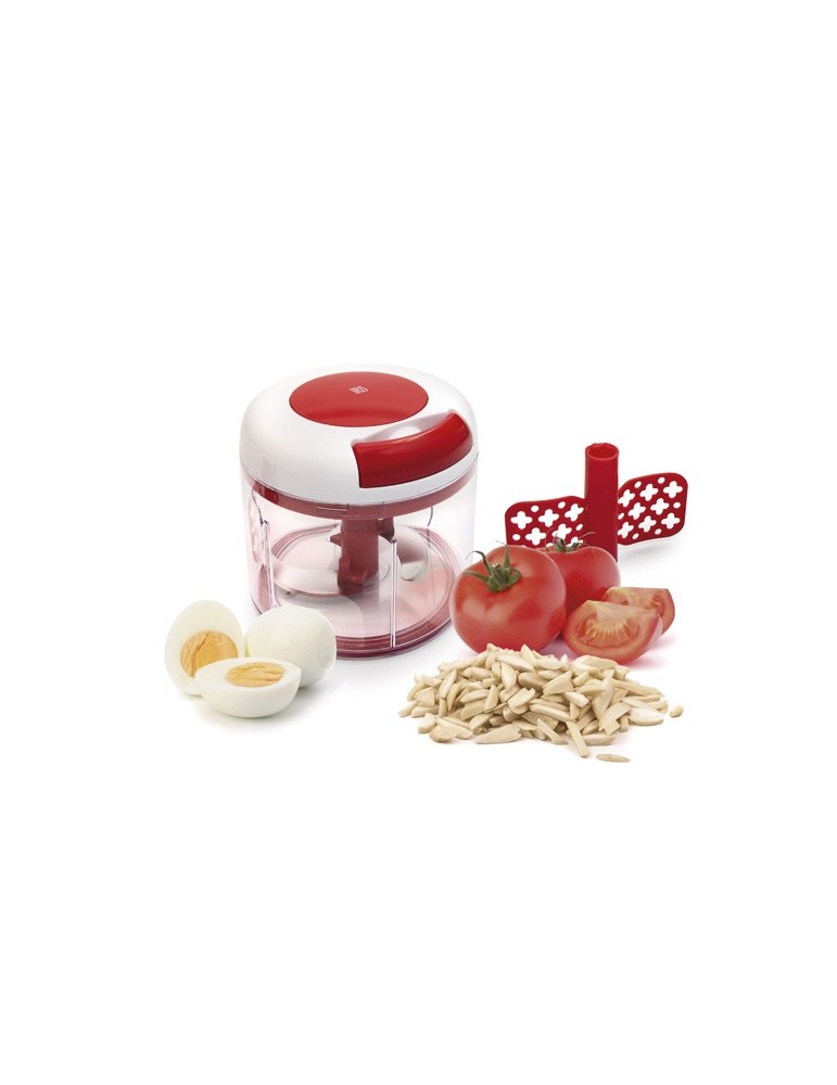 Sirve para cortar fruta y verdura. picar ajos, cebollas, tomates, zanahorias? en pocos segundos. También puede usarse para trocear hierbas aromáticas o carnes. Incluye un accesorio para usarla como mezcladora de salsas.