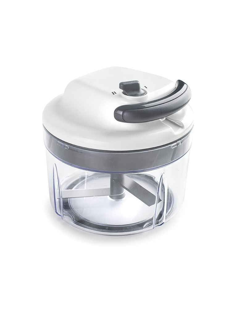 Incluye tres potentes cuchillas ultraresistentes fabricadas en acero inoxidable de máxima calidad. Ajuste de dos velocidades: (I) Velocidad baja: para cortar y picar más grueso. (II) Velocidad alta: para un corte y picado más fino. Pequeño compacto y fácil de limpiar. 1,2 l.