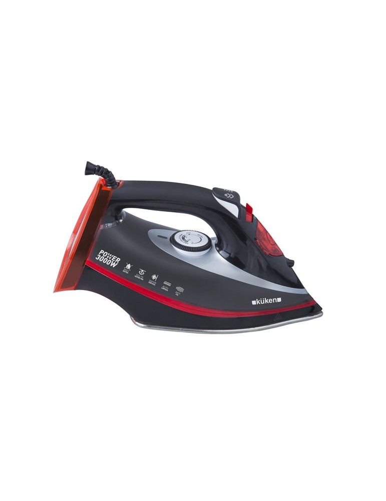 Potencia: 3.000 W. Voltaje: 220 - 240 V ~ 50 Hz. Cuerpo en plástico. Suela en acero inoxidable. Color negro y rojo. Selector de temperatura variable. Funciones: vapor ON/OFF - Spray difusor. Caudal de vapor regulable: 0 - 30 g/min. Golpe de vapor: 100 g/min.