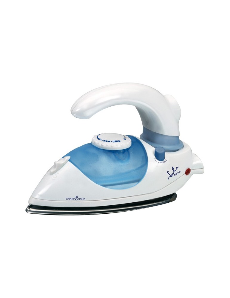 Potencia 800 W. Suela de acero inoxidable. Mango abatible. Termostato regulable de temperatura. Bolsa textil de viaje.