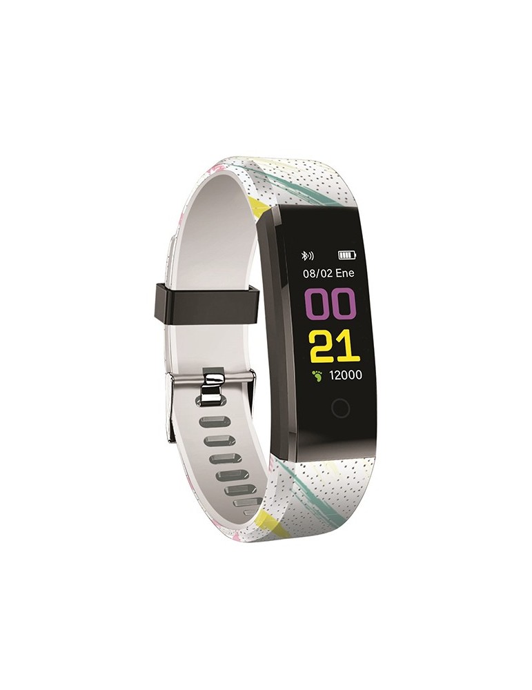 Funciona junto con aplicación en el móvil. Función GPS a través del móvil, Presión sanguínea, Oxigeno en sangre, Previsión del tiempo, Podómetro, pulsómetro, Monitor de sueño, calcula distancia, pasos y calorías. Pantalla TFT 0,96? a color. Carga mediante USB.