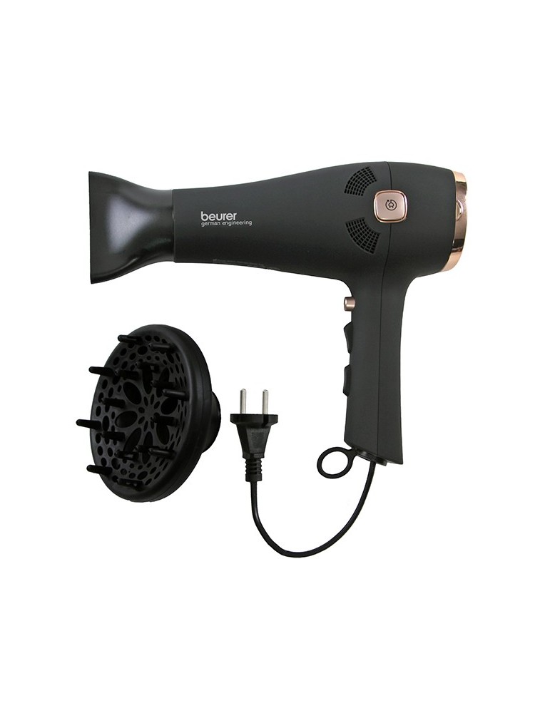 Potencia: 2.200 W. Función iones integrada. Concentrador prof. estrecho y difusor de volumen. Posición de aire frío bloqueable para fijar el modelado. 3 temperaturas y 2 velocidades. Protector sobrecalentamiento automático. Cable retráctil.
