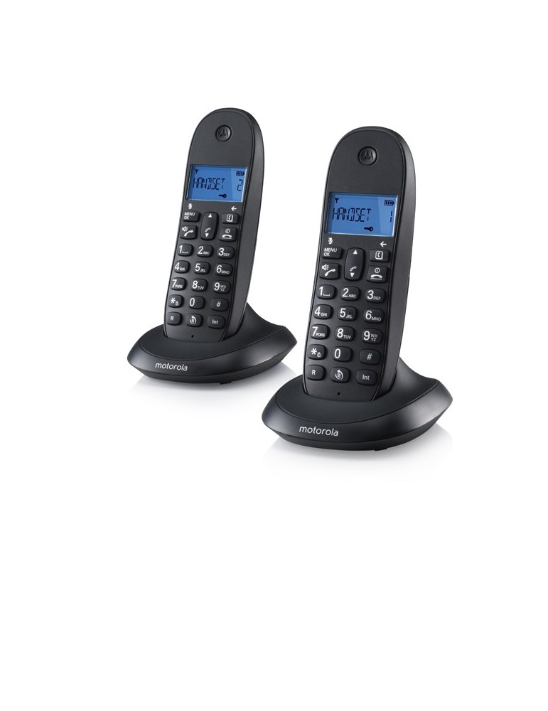 Pantalla retroiluminada. Agenda de 50 contactos, función mute, registro de las últimas 50 llamadas, 10 melodías seleccionables. Función manos libres. Compatible GAP. C1002 LB (dúo)