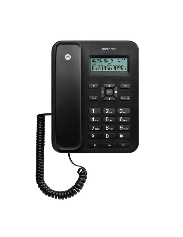 Terminal para línea convencional. Función manos libres. Gran pantalla con identificación de llamada. Función música en espera. Modo marcación Tonos/Pulsos. 10 teclas de memoria (marcación en 2 pasos) Negro.