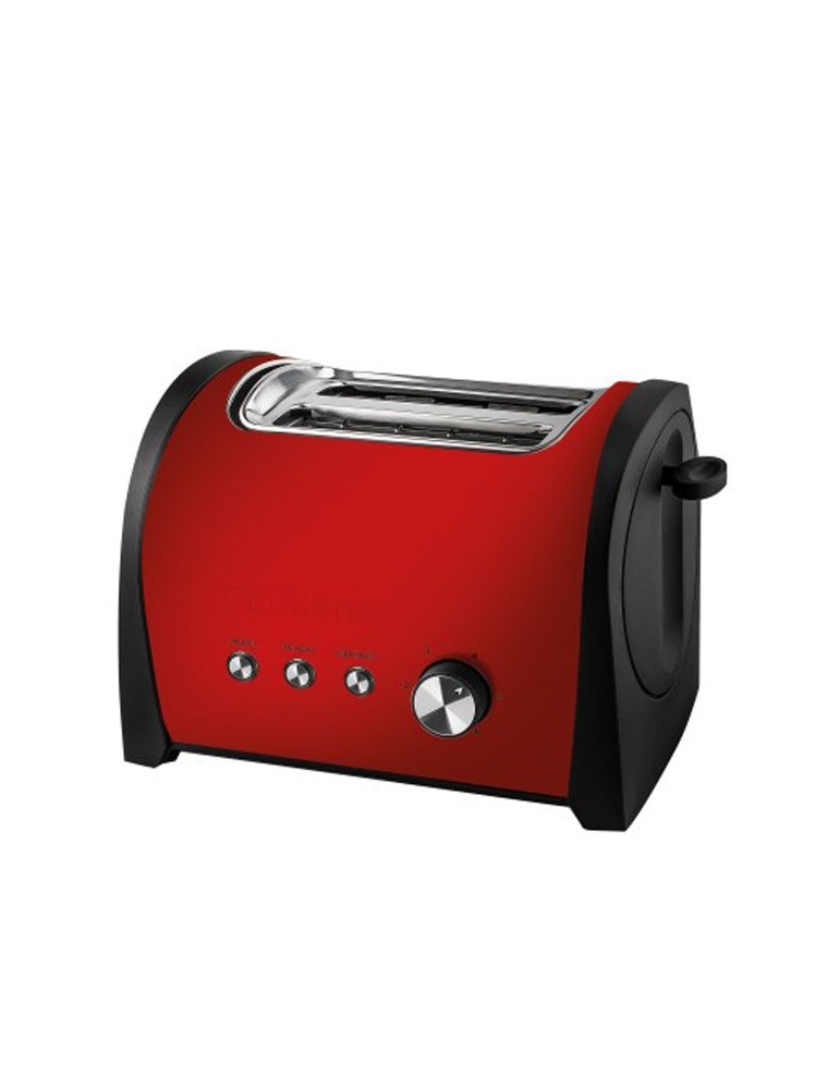 800W de potencia. Diseño en acero inoxidable con acabado en rojo. Resistencias de gran superficie para un tostado uniforme. Selector giratorio con 6 niveles de tostado. Botones con borde luminoso
