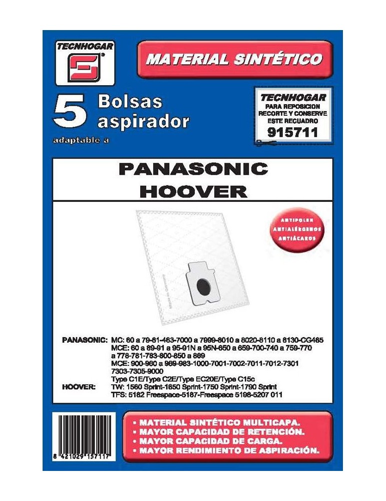 BOLSA ASPIRADOR 5 U. PANASONIC - 915711