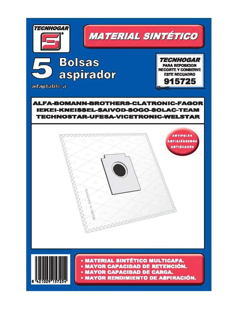 BOLSA ASPIRADOR 5 U. SOLAC-FAG - 915725