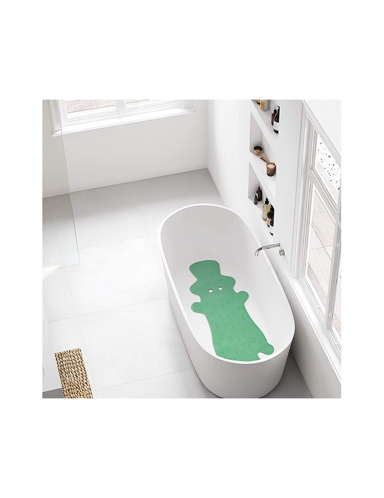 Alfombrilla de caucho antideslizante en forma de cocodrilo. Sujección con ventosas de alta resistencia.Se puede lavar en la lavadora. Anti moho. 86x33 cm.
