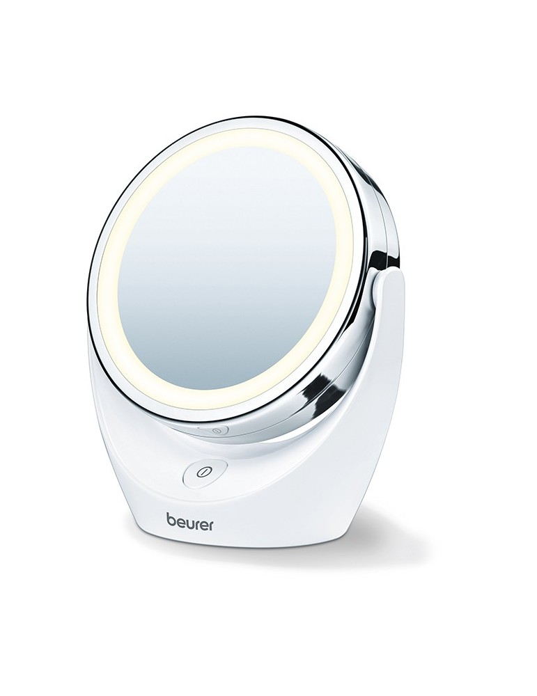 Espejo pivotante. 2 espejos en 1: 1 cara vista normal, 1 cara vista con aumento (x5). Luz LED brillante (con 12 LED?s). Pilas (3 x 1,5V AAA) incluidas. Diámetro: 11 cm.