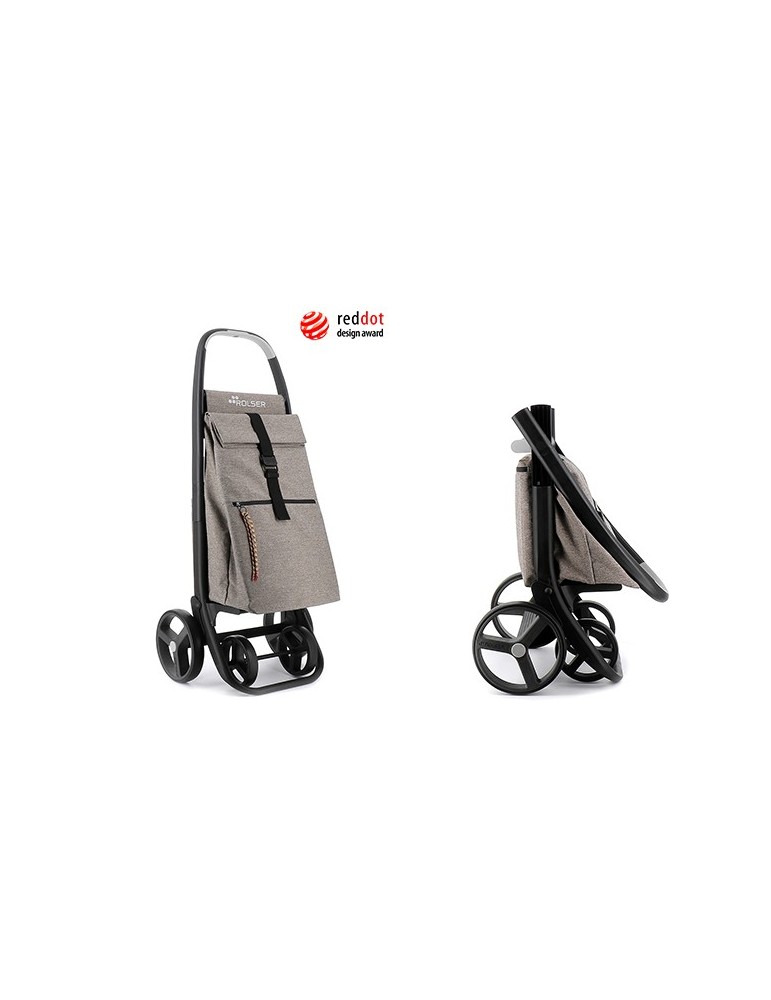 Carro de plástico 100% procedente de componentes tratados y reutilizados Doble sistema de plegado, 2/4 ruedas y bolsillo térmico trasero con cremallera.