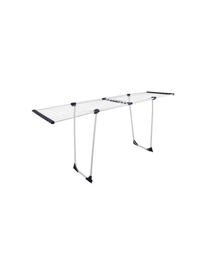 De gran calidad y buenos acabados. Tubo Ø 16mm. Con ruedecillas. Extensible. Altura tendido 90 cm. 20 metros de tendido. Patas en forma de U. Dimensiones: 128 x 55 x 5 cm. Peso: 4,5 kg. Topes recubiertos con piezas de plástico. Soldadura de gran calidad. Bañado en pintura en polvo epoxi de fósforo.