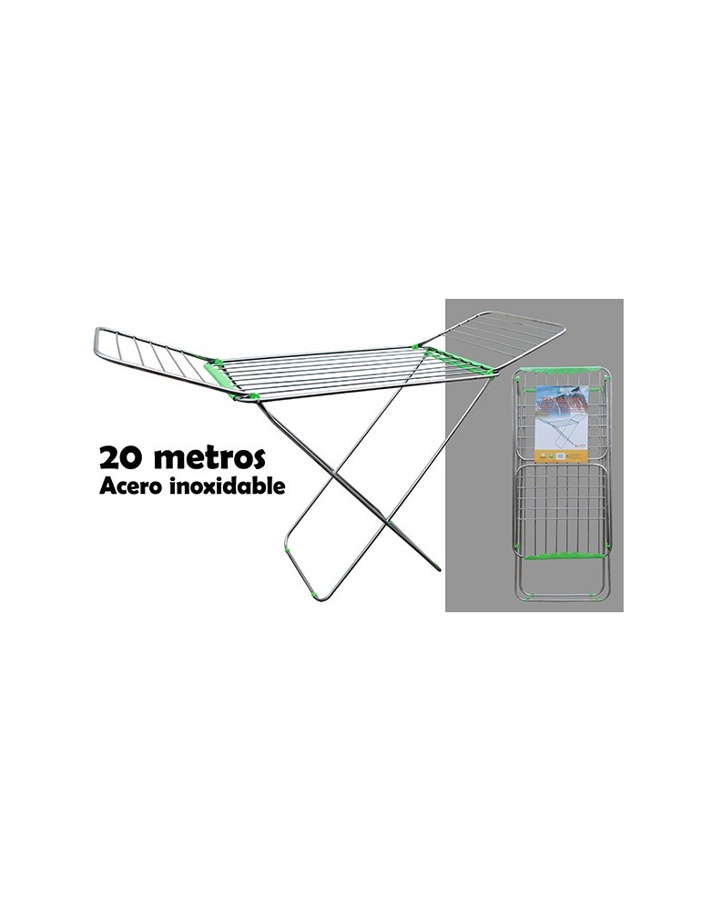 Tendedero de acero inoxidable, 20 m de tendido. Medidas: 180 x 50 x 110 cm