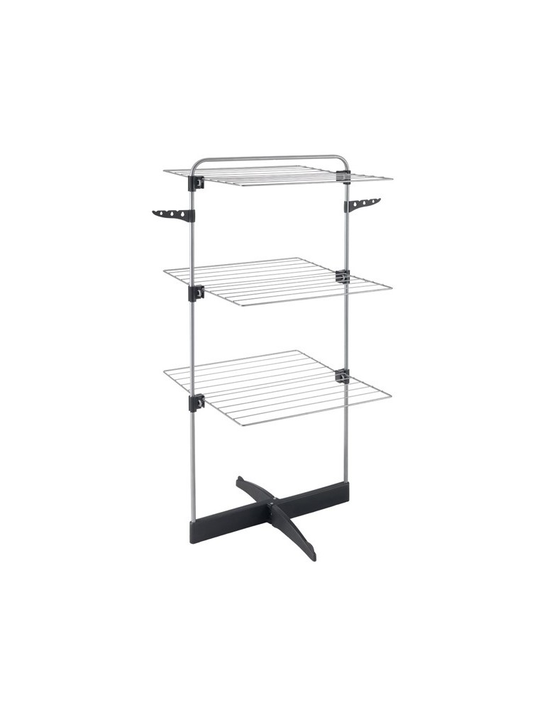 22 m. 3 Alturas. Plegable, con estantes abatibles y 2 colgadores para perchas. Con sistema de media apertura ideal para espacios estrechos. Medidas: 58 x 54 x 123 cm.