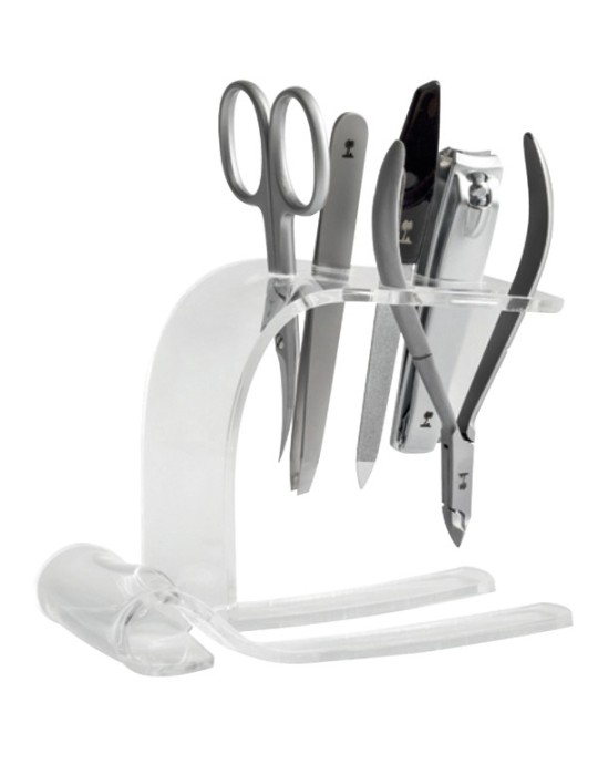 Set de manicura para el tocador, con un práctico y vistoso soporte con la selección de productos que mejor cubrirá tus necesidades de aseo habituales.