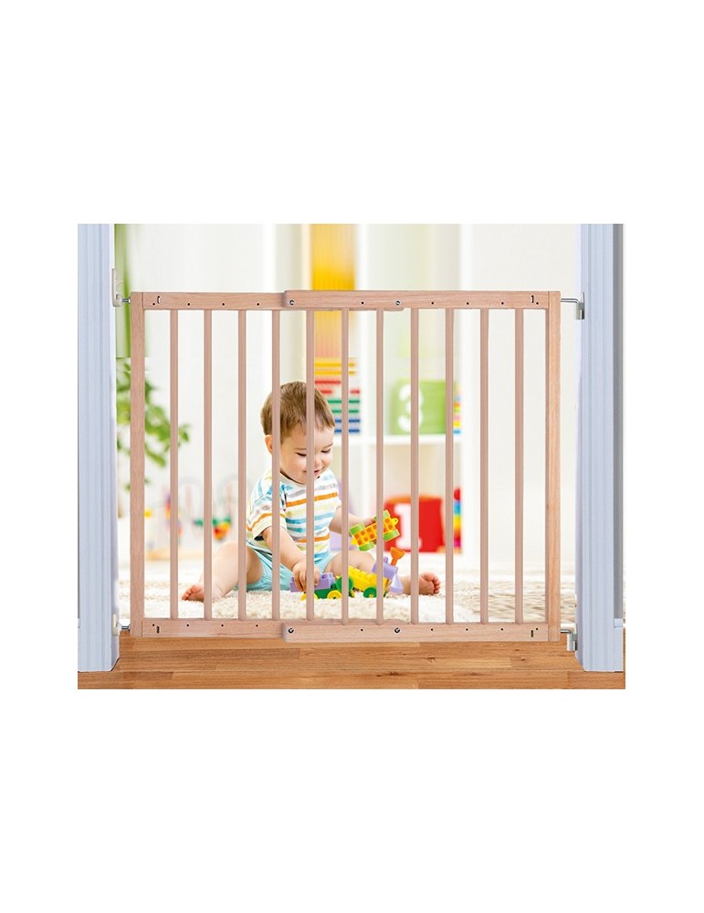 Protege de accesos a escaleras y marcos de puertas a los más pequeños. Medidas: 70 x 63,5 x 103,5 cm. Es una valla fácil de instalar. Incluye tanto elementos de fijación como instrucciones de montaje.