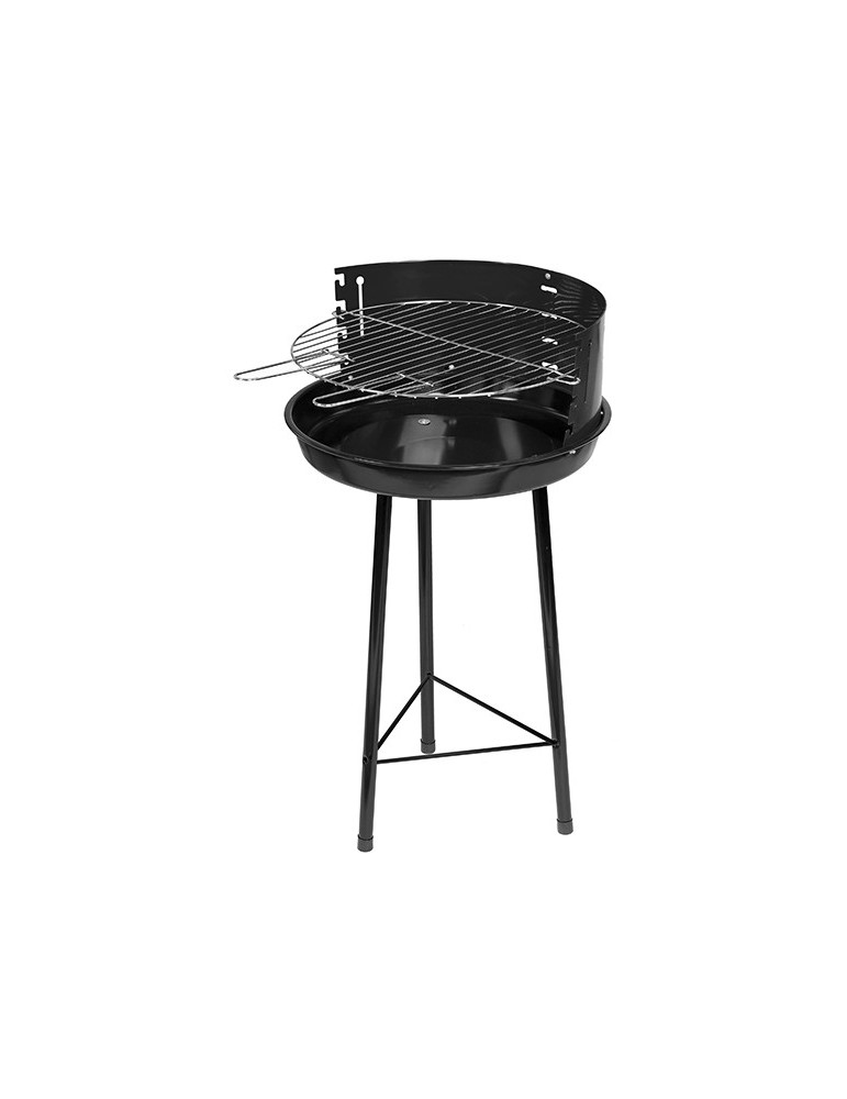Diámetro 42 cm. Parrilla cromada regulable 3 alturas. Tres patas con estabilizador.