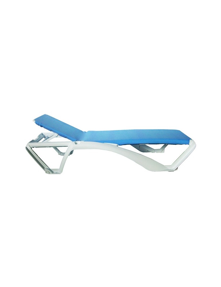 Estructura de polipropileno y fibra de vidrio. Textileno termosoldado para mayor resistencia. Protección UV. Ruedas en patas traseras y tacos antideslizantes en las delanteras. Incorpora posavasos. Reclinable en 4 posiciones. Color azul o marrón.