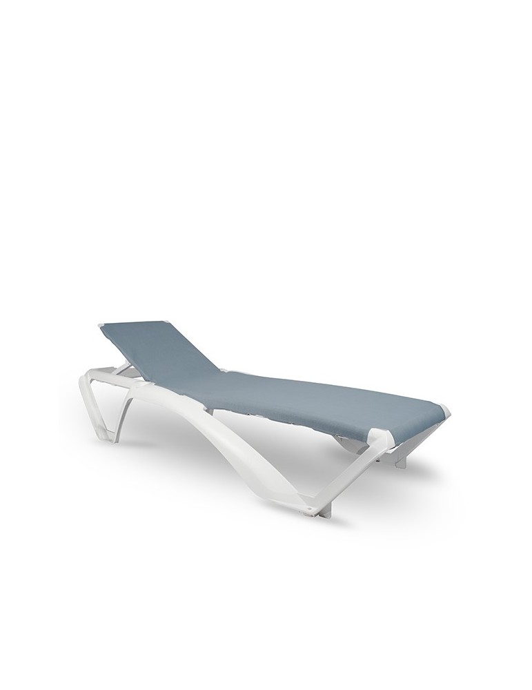 Tumbona apilable con estructura de polipropileno y fibra de vidrio. Textilene de 850 gr/m2, termo-soldado, para mayor resistencia, trama y urdimbre de doble hilo. Protección UV. Ruedas en patas traseras y tacos antideslizantes en las delanteras y traseras. Incorpora posavasos.