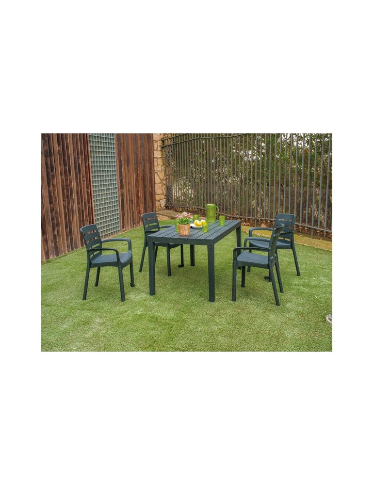 En polipropileno rectangular 137 x 78 cm. Color antracita. Tablero con lamas que imita las vetas de la madera.