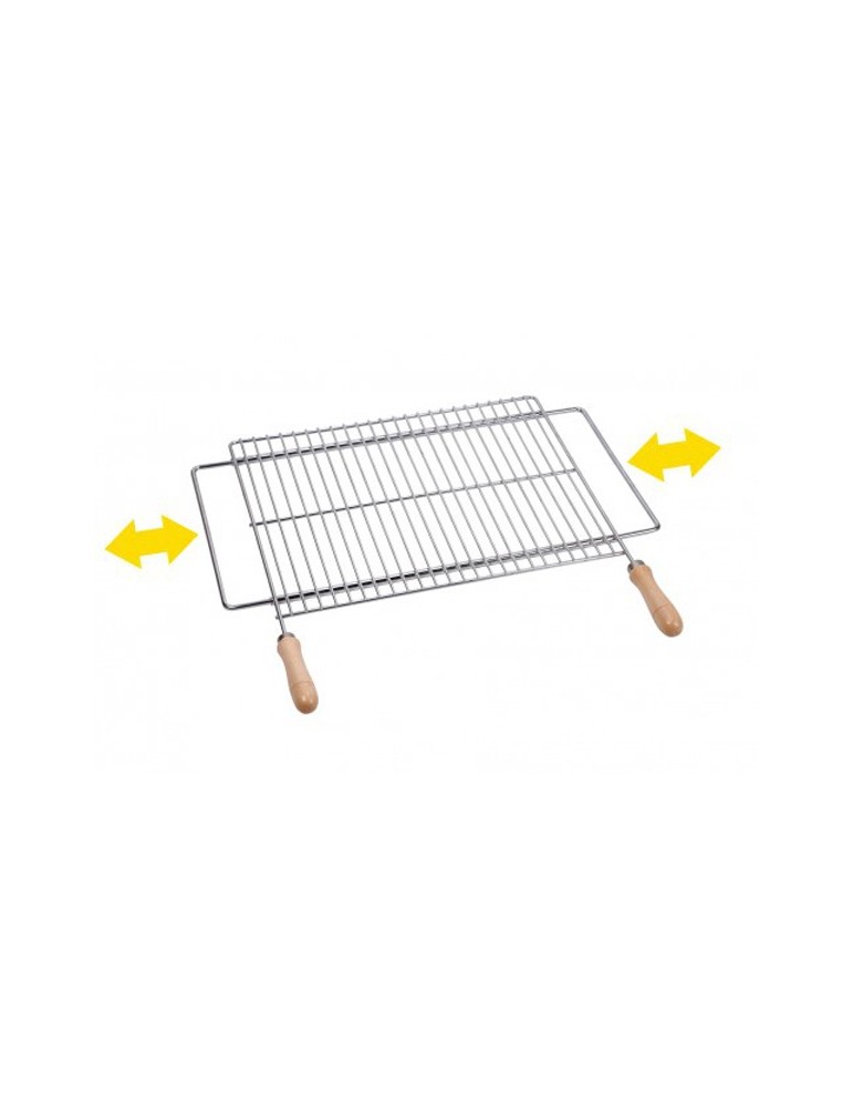 Fabricada en acero zincado, extensible que se adapta a cualquier medida de barbacoa. Mangos de madera y varillas reforzadas. 60 x 40 cm.