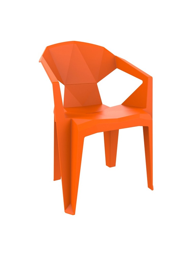 Sillón monobloc para uso interior y exterior. Apilable y resistente. Inyectado en polipropileno y fibra de vidrio. Protección contra rayos UVA. Colores Lima, Naranja, Arena y Chocolate