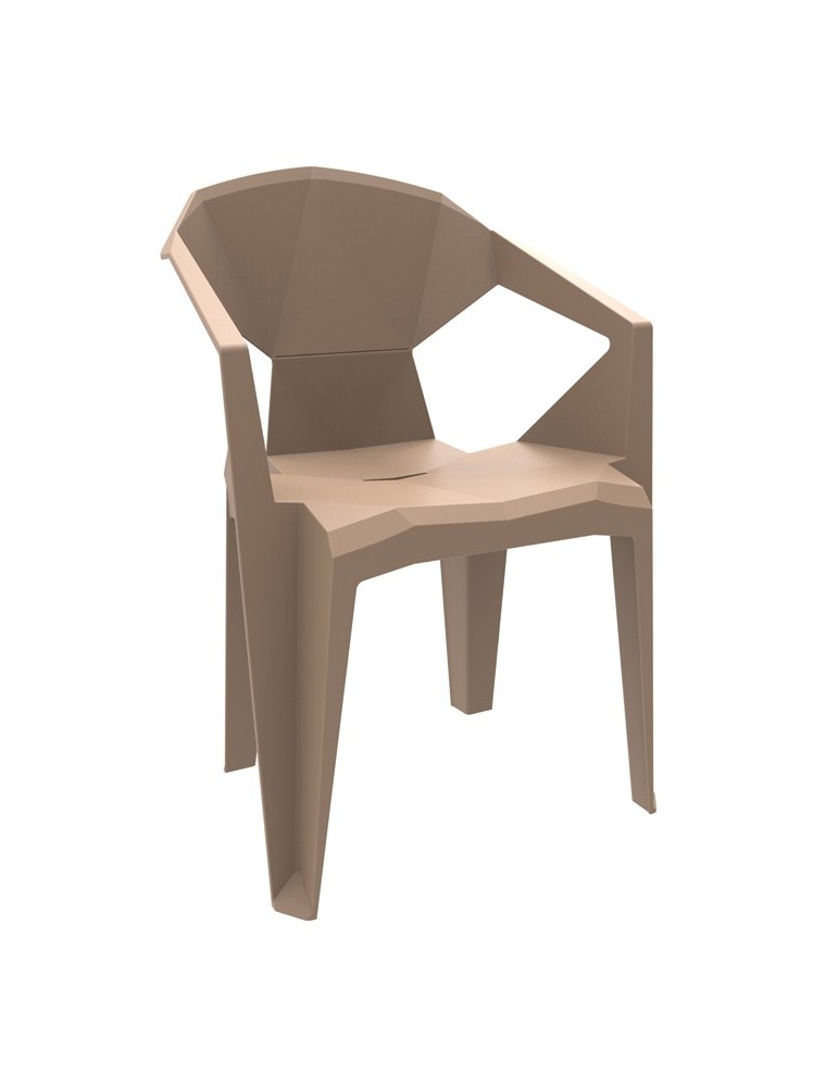 Sillón monobloc para uso interior y exterior. Apilable y resistente. Inyectado en polipropileno y fibra de vidrio. Protección contra rayos UVA. Arena y chocolate.