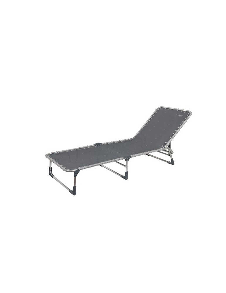 Resistencia 140 kg. Regulable, elástica, 3 patas. Gomas elásticas para mayor confort, asa para transporte en posición de plegado. Color antracita. Medidas 91 x 198 x 64 cm.