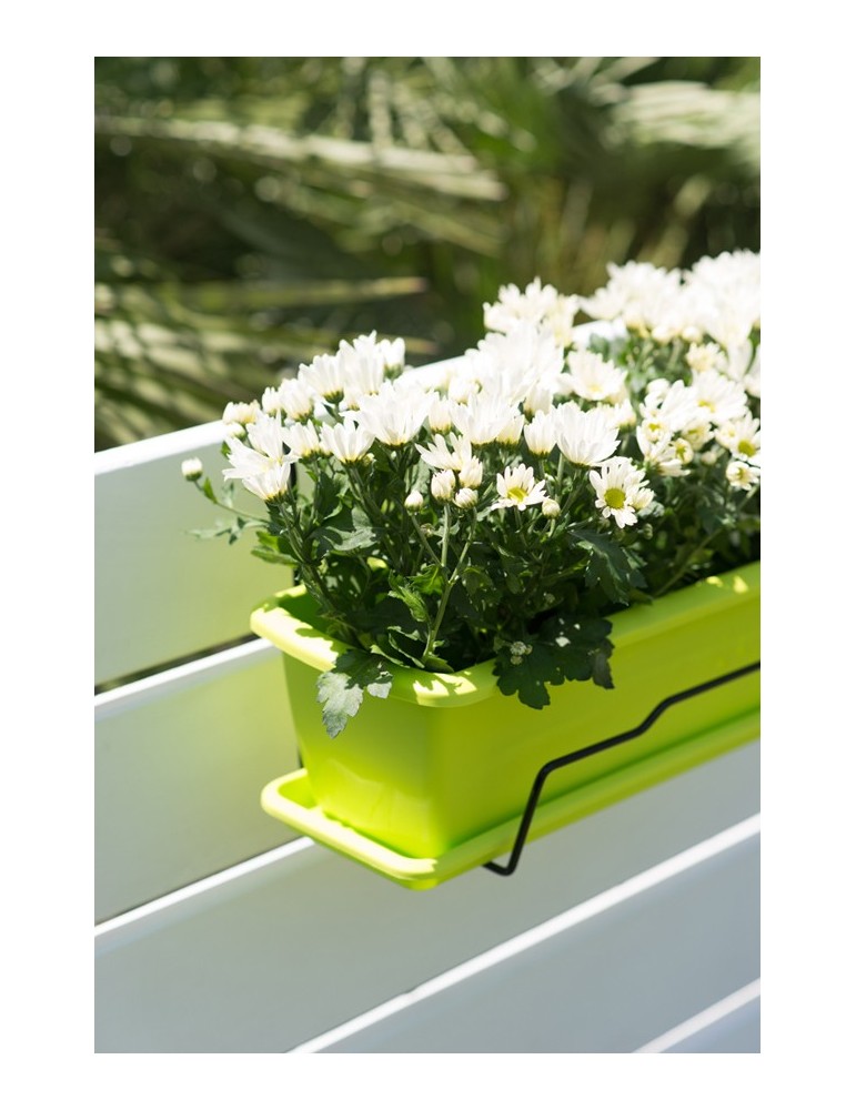Compuesto por balconera + bandeja reserva de agua + soporte de metal. Colores terracota, antracita y pistacho. Medida 50 cm.