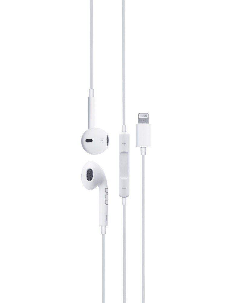 Auriculares con micrófono y control de volumen compatibles con dispositivos Apple (iPhone, iPad, iPod).