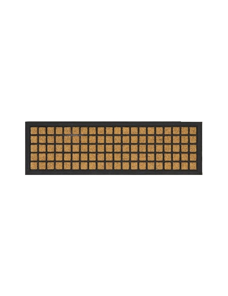 Polipropileno moldeado sobre base de goma. Limpia y absorbe la humedad. Imitación coco. 25 x 75 cm.