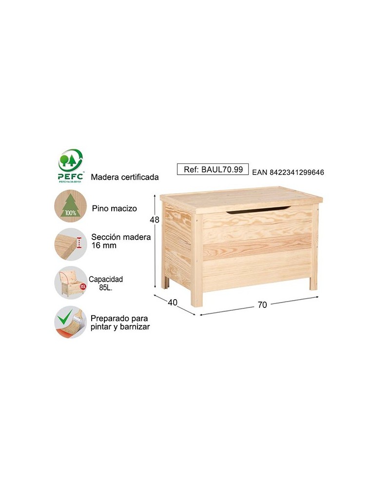 Capacidad 85 l. Pino macizo. Preparado para pintar y barnizar. 40 x 48 x 70 cm