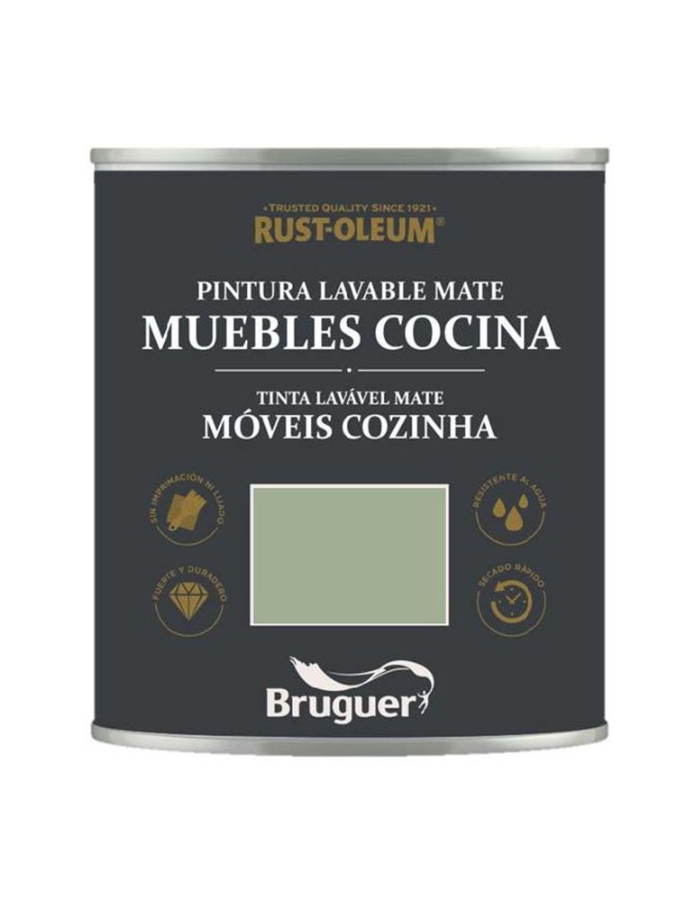 Apto para cajones, puertas y molduras de madera. Lavable y resistente al agua, arañazos y las manchas más comunes. Aplicación directa, no se necesita imprimación previa ni barniz protector posterior. 750 ml. Verde oliva