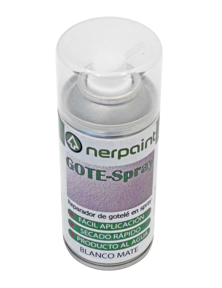 Reparador/Restaurador de Gotelé en spray. Producto al agua, de fácil aplicación y secado rápido. Una vez seco se puede pintar y no merma. Blanco mate. 400 ml.